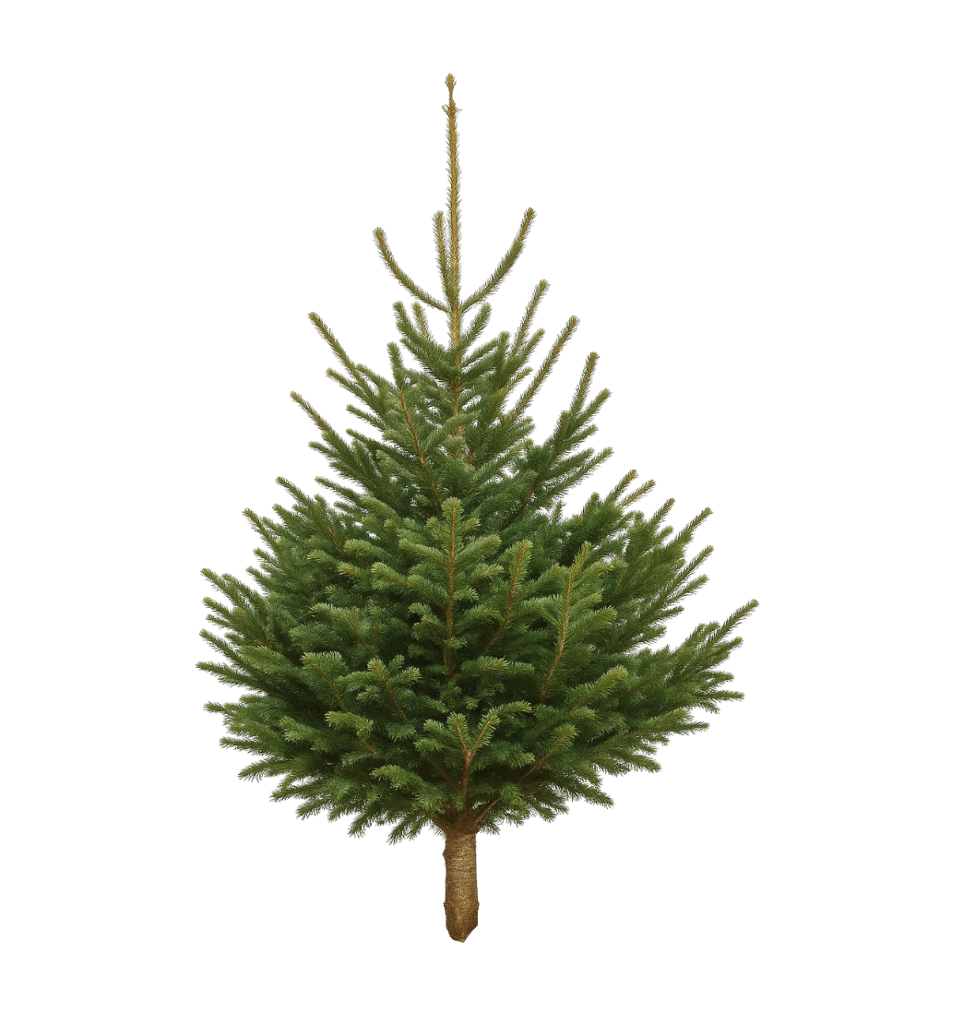 Découvrez notre sélection de sapins Nordmann, soigneusement coupés et préparés par nos lutins du Nord.